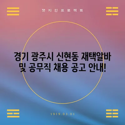 경기 광주시 신현동 재택알바 및 공무직 채용 공고 안내!