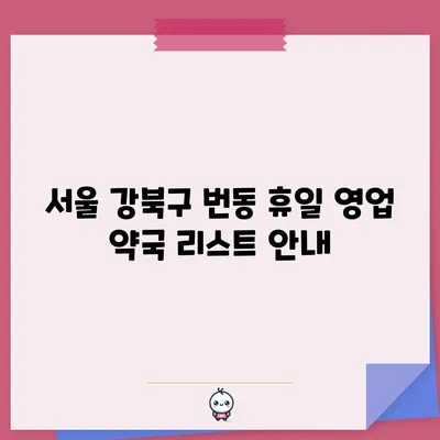 서울특별시 강북구 번동 휴일 영업 약국 안내 서울특별시 강북구 번동 지역에 거주하거나 방문하시는 분들에게는 {휴일 영업 약국 정보}가 꼭 필요합니다. …