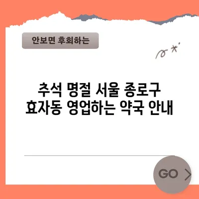 서울특별시 종로구 효자동 휴일 영업 약국: 추석 명절 문 여는 약국 안내 서울특별시 종로구 효자동에서 휴일이나 명절 동안에 영업하는 약국을 …
