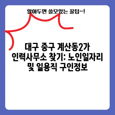 대구 중구 계산동2가 인력사무소 추천 직업소개소 노인일자리 노가다 일용직 파출부 구인구직 채용공고 대구 중구 계산동2가에는 여러 인력사무소가 있어 다양한 일자리를 …
