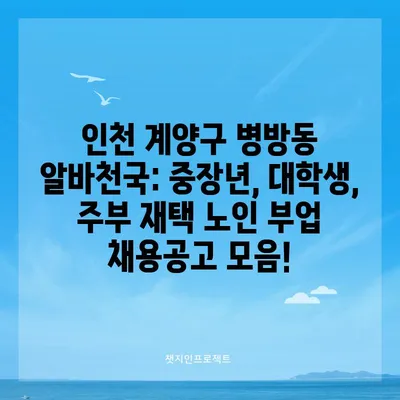 인천 계양구 병방동 알바천국 홈페이지 일자리 노인 중장년 재택 부업 대학생 주부 청소년 채용공고 인천 계양구 병방동의 알바천국 홈페이지에서는 다양한 …