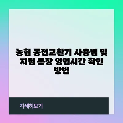 농협 동전교환기 사용법 및 지점 통장 영업시간 확인 방법