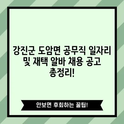 강진군 도암면 공무직 일자리 및 재택 알바 채용 공고 총정리!