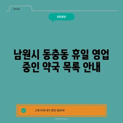 남원시 동충동 휴일 영업 중인 약국 목록 안내