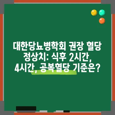 대한당뇨병학회 권장 혈당 정상치: 식후 2시간, 4시간, 공복혈당 기준은?