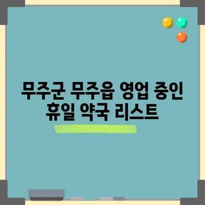 전라북도 무주군 무주읍 휴일 영업 약국 전라북도 무주군 무주읍에서 공휴일이나 명절에도 운영하는 약국을 미리 확인하는 것은 매우 중요한 일입니다. 특히 …