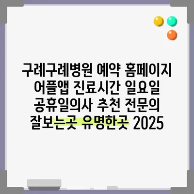구례구례병원 예약 홈페이지 어플앱 진료시간 일요일 공휴일의사 추천 전문의 잘보는곳 유명한곳 2025