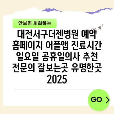 대전서구더젠병원 예약 홈페이지 어플앱 진료시간 일요일 공휴일의사 추천 전문의 잘보는곳 유명한곳 2025