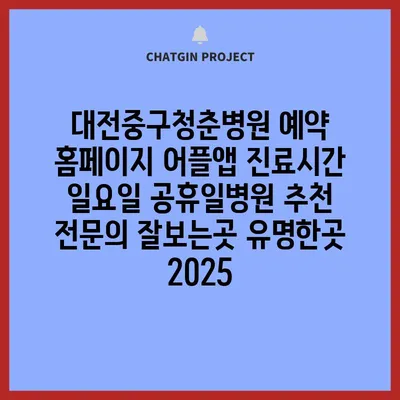 대전중구청춘병원 예약 홈페이지 어플앱 진료시간 일요일 공휴일의사 추천 전문의 잘보는곳 유명한곳 2025